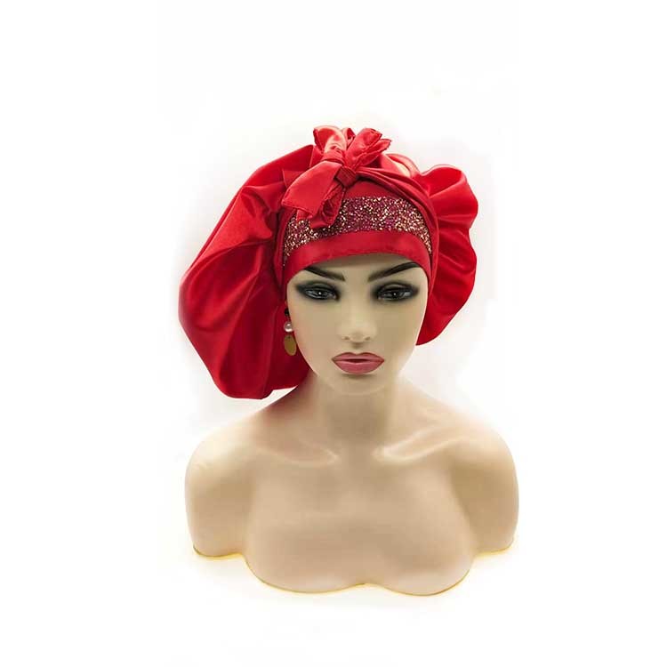 बिग बो फोल्डेबल स्लीपिंग हेयर बोनट 27 इंच सैटिन लाइनेड स्लीप कैप